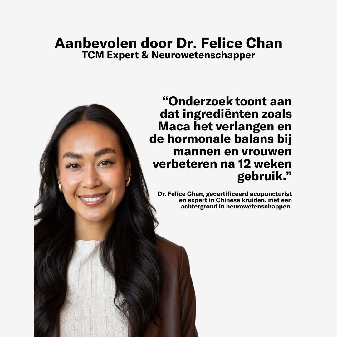 "Uit onderzoek is gebleken dat ingrediënten zoals Maca het seksuele verlangen en de hormoonbalans bij zowel mannen als vrouwen verbeteren."