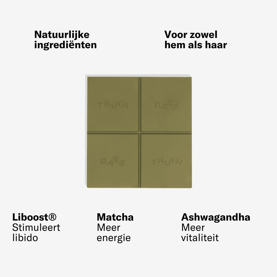 De matcha-aardbei lustopwekkende chocolade die elke avond nét wat speelser en intiemer maakt.